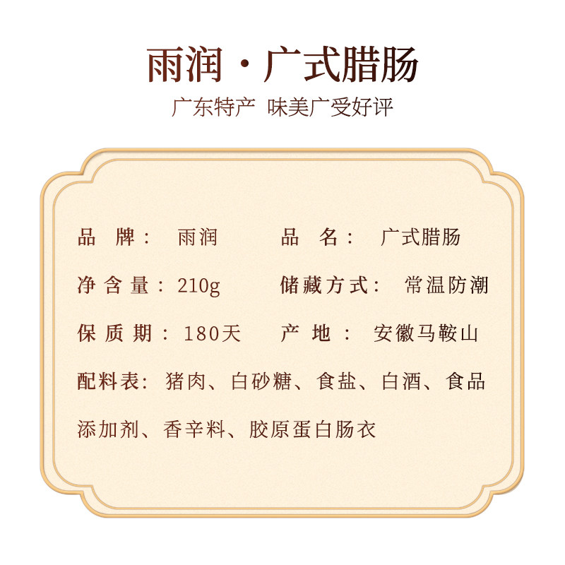 Yurun Cantonese sausage 210g * 3 Guangdong sausage sausage bacon specialty food Sweet sausage Guangwei gourmet food