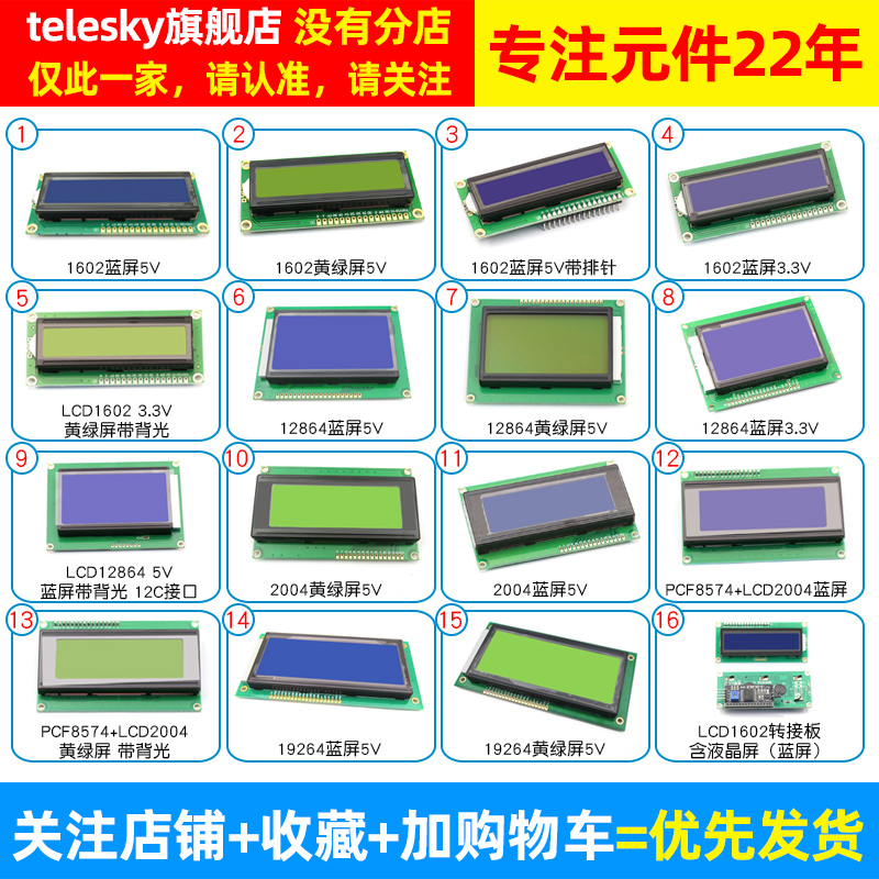 LCD1602A 12864 2004 blue screen yellow green screen backlight LCD display 3 3V 5V liquid crystal screen diy