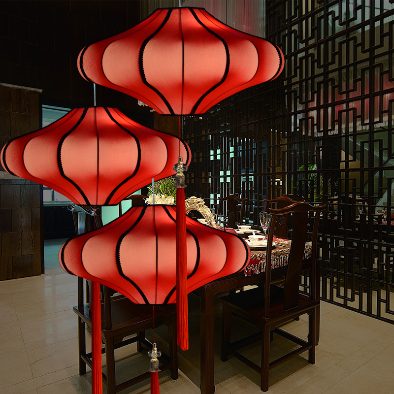 Modern Chinese classical chandelier living room restaurant door Mingqing court lantern decorated handcrafted fabric lighting