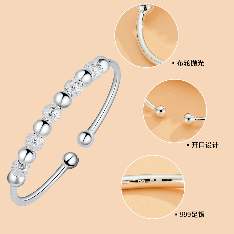 S999 foot silver single-minded beaded sterling silver bracelet Women's summer opening simple matte fashion girlfriend Tanabata gift