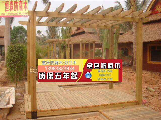 Courtyard grape shelf Chongqing Municipal greenhouse Greenhouse Rot-proof wood vine flower shelf glass Sunshine shed with roof garden fence