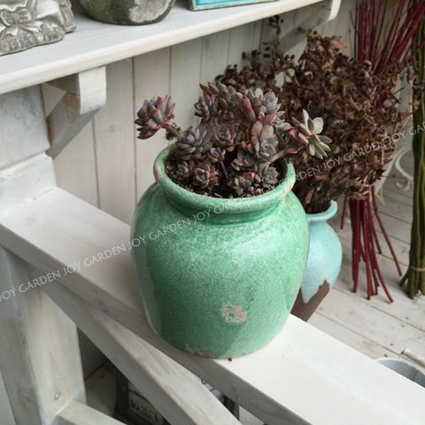 Fall in love with the garden glazed red pottery flowerpot retro indoor fleshy old pile large diameter breathable agate agate stone on the Gobi