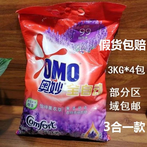 OMO automatic lavender phosphorus-free washing powder 3kg*4 bags machine wash hands wash stains long-lasting fragrance
