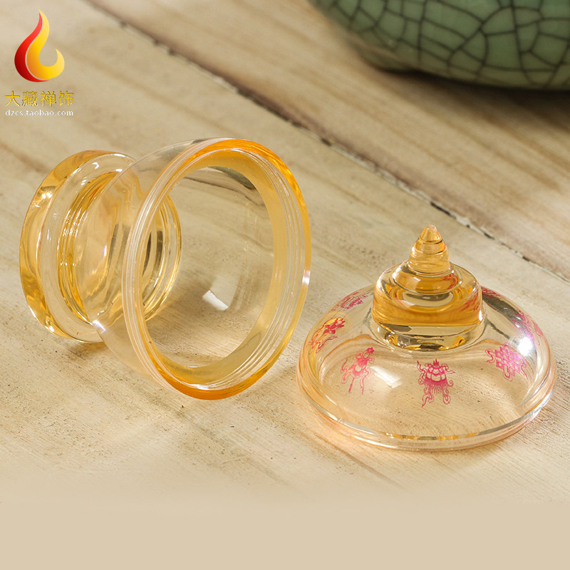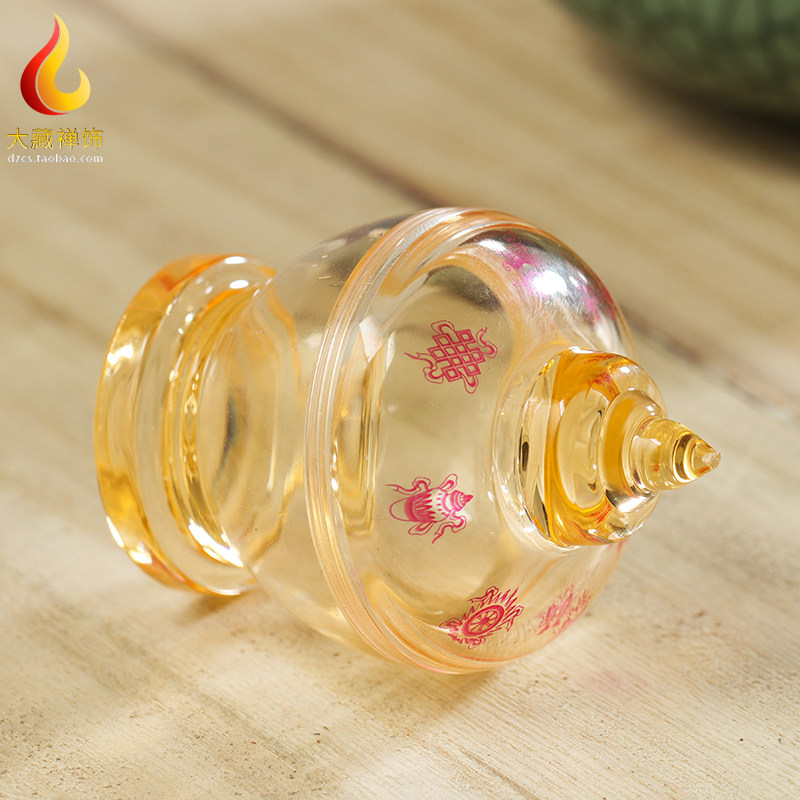Tantric Buddhism Eight Auspicious Treasure Bottle Crystal Pagoda Bodhi Tower 6cm Buddhist supplies yellow