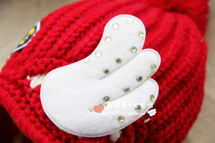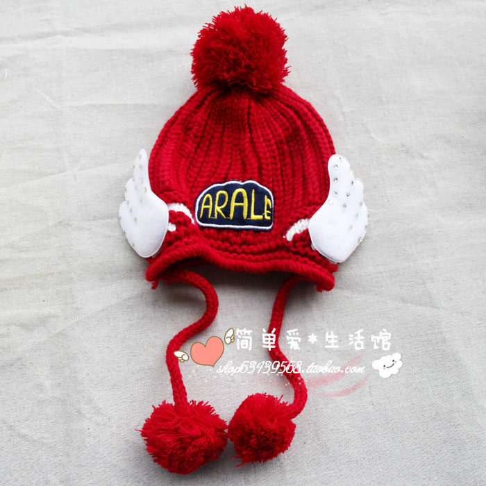 Korean version of the new cute wool hat baby pullover hat double ball angel wings knitted hat children's hat