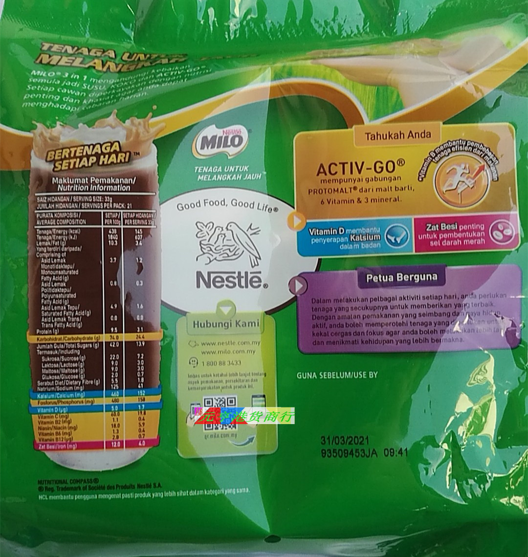 Malaysia imports NestleMILO Milo malt cocoa powder chocolate brewing 18 packs 594g