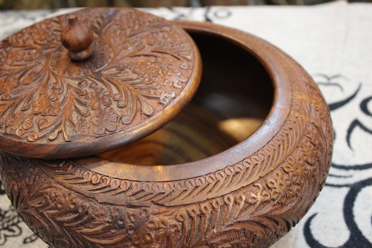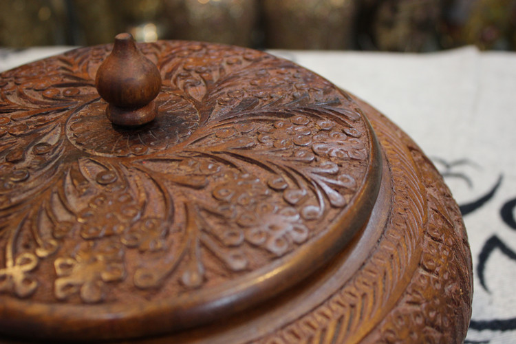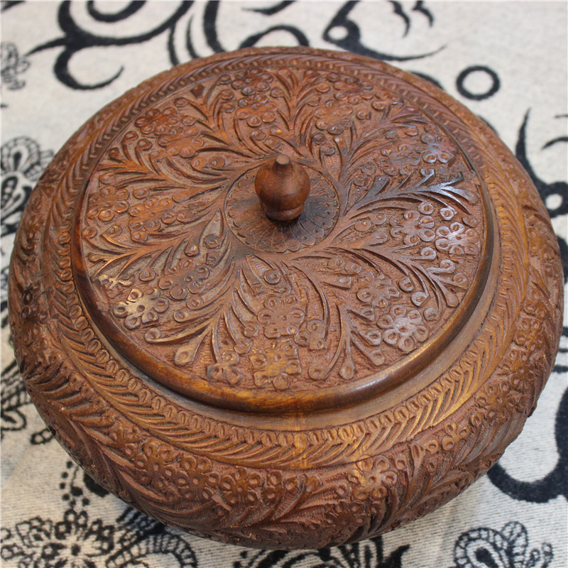 Pakistan walnut wood carved vintage dried fruit candy cans factory direct home decoration gifts BM56
