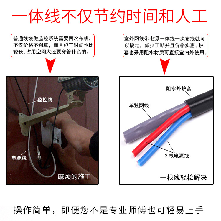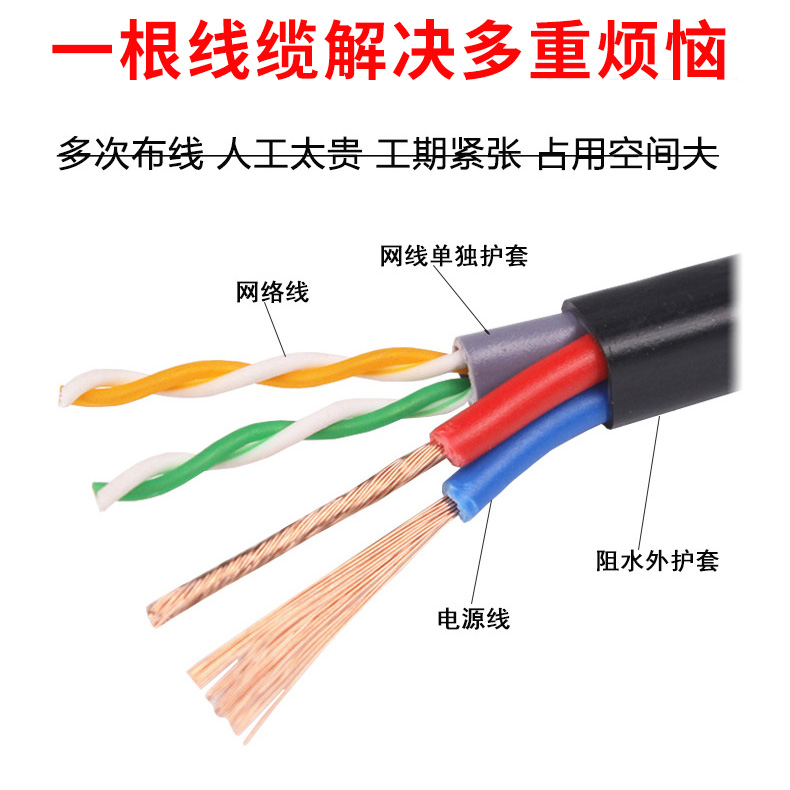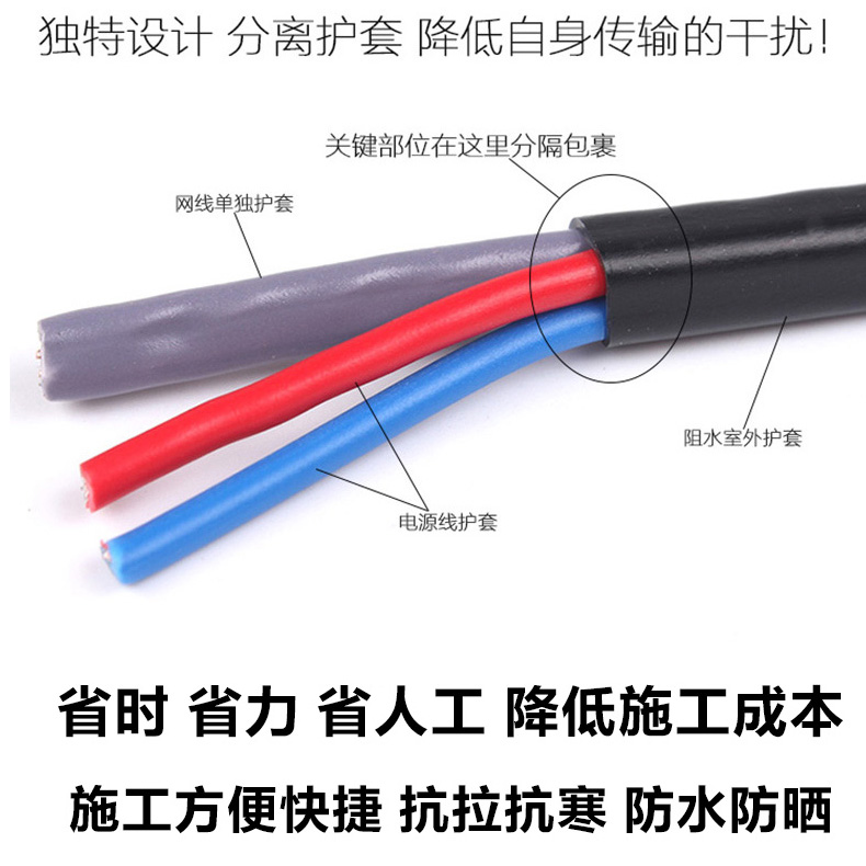 Outdoor 4-core 8-core monitoring network cable with power supply integrated line Network integrated line composite line Twisted pair 300 meters disc