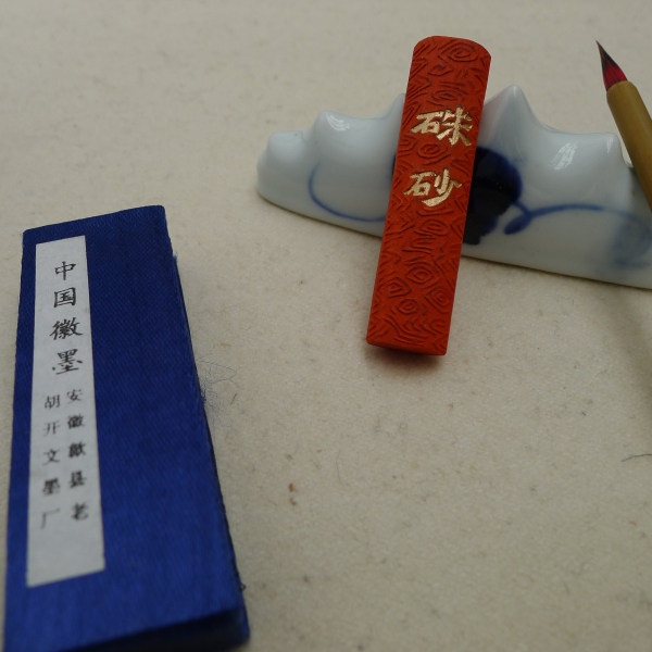 Lao Hu Kaiwen Hui ink] 5 money cinnabar ink (Hui She Lao Hu Kaiwen ink ink stick ink block)