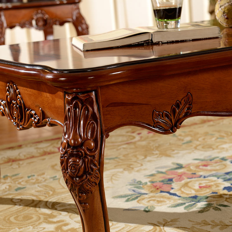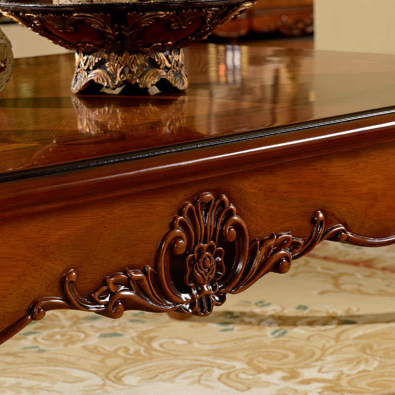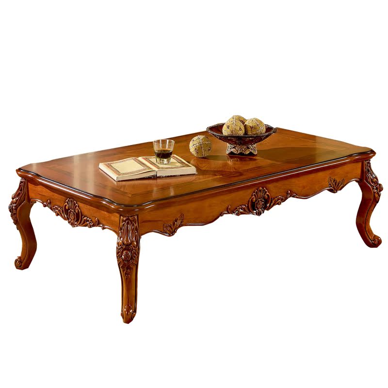 European solid wood long coffee table American living room long coffee table 1.4m oak carved long coffee table square table