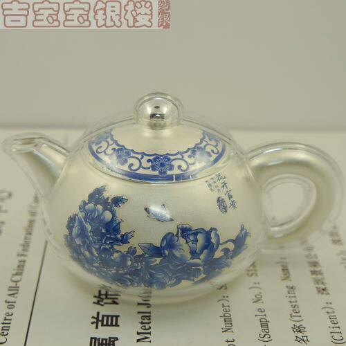 Green Flowers 999 Pure Silver Teapot Tea Tea Set Group Foot Silver Business Gift Collection Pure Silver Tea Set