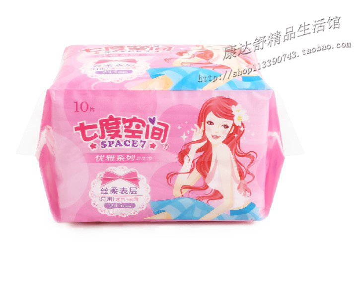 Seven-degree space sanitary cotton elegant series cotton flexo daily slim 245mm10 sheet loaded with eight packs
