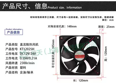 KT12025H SMALL AXIAL flow fan AC220V DC FAN DC12 24V 120MM COOLING FAN 12CM