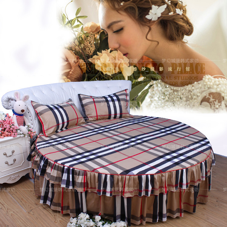 Night Dance Allure cotton round bed four-piece round bed bedding kit square bed bedding classic coffee color plaid