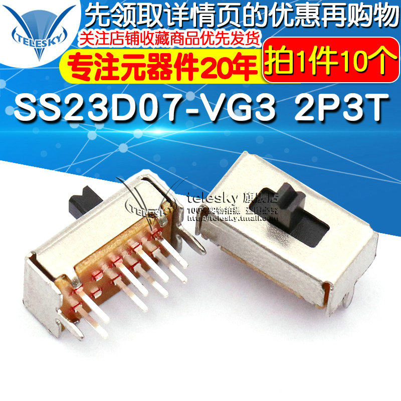 SS23D07-VG3 light acrylic ROHS 2P3T toggle slide switch 3 gears (10 PCs)