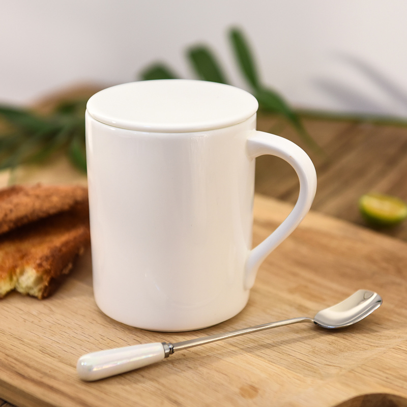 Color-changing bone china cup Pure white ultra-thin spoon with lid Large capacity mug Custom water cup can be printed as a photo logo