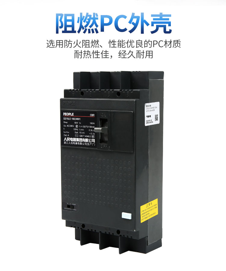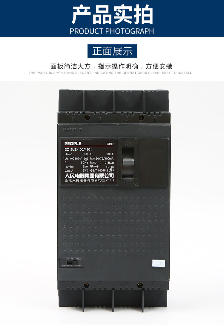 People's electric leakage circuit breaker DZ15LE-100 490 air switch three-phase four-wire 100A touch protector