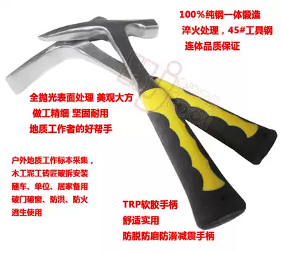 One-piece 600g Geological hammer flat-head pointed hammer geological exploration tool flat-mouth hammer duckbill exploration hammer
