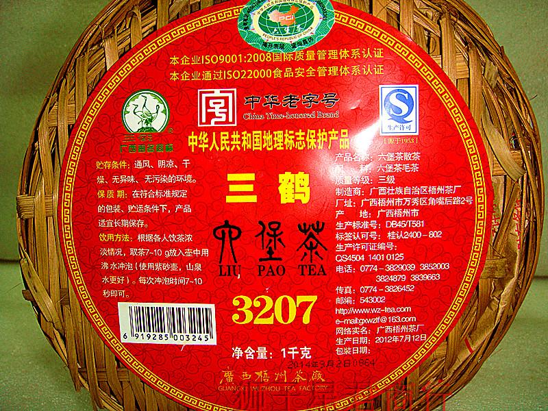() Guangxi Specialty Dark Tea Wuzhou Tea Factory Three Cranes 3207 Liu Castle Tea Leaf 1000g Extra Grade Dark Tea