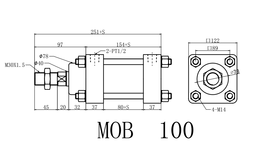 MOB100 (cylinder diameter) * 25 (stroke) MOB100 * 50MOB100 * 75MOB100 100MOB100 * 125MOB10 * 125MOB10 * 125MOB10