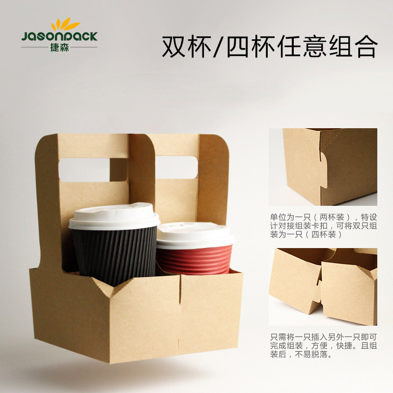 Portable takeaway kraft paper beverage paper cup box takeaway milk tea paper box packaging coffee cup paper tray 20 packs