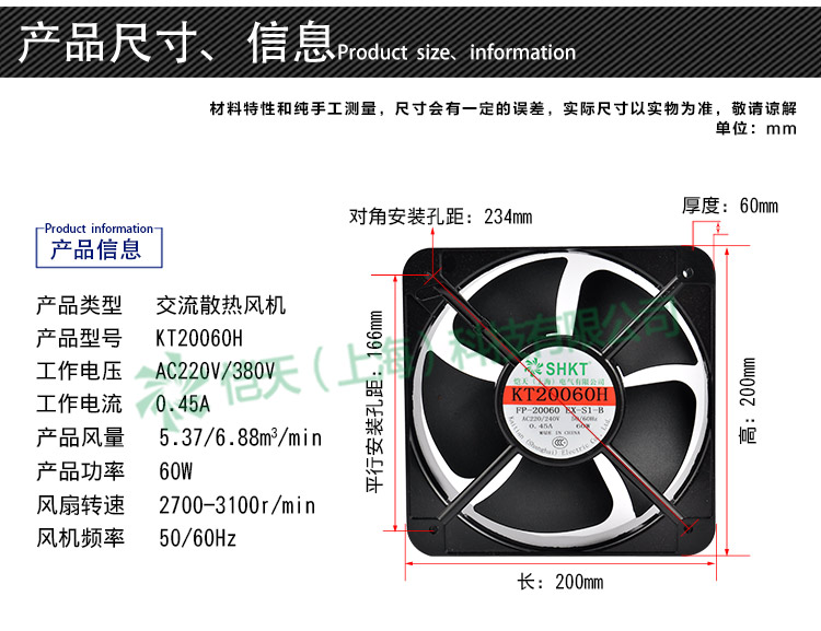 20060 cooling fan 220V industrial axial fan 380V 200MM20CM welding machine cabinet distribution box 8 inch