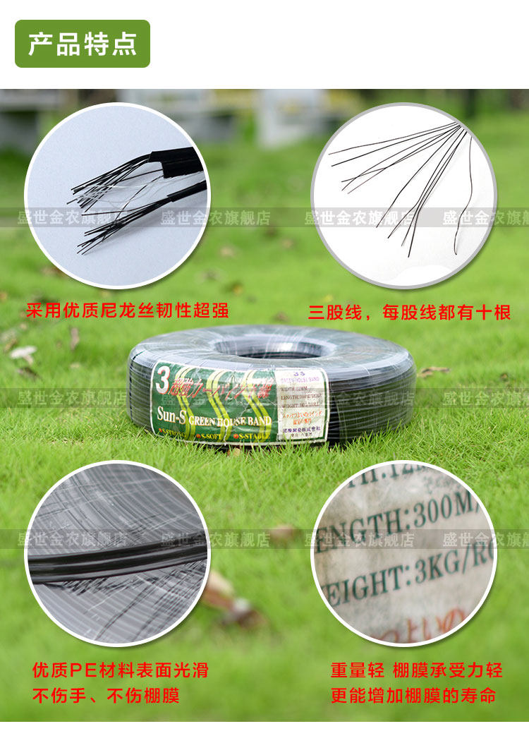 Exit Ultra-Tensile Anti-Aging Vegetable Greenhouse Pressure Film Wire Press Membrane Rope Greenhouse Fixed Film PE Material Concord