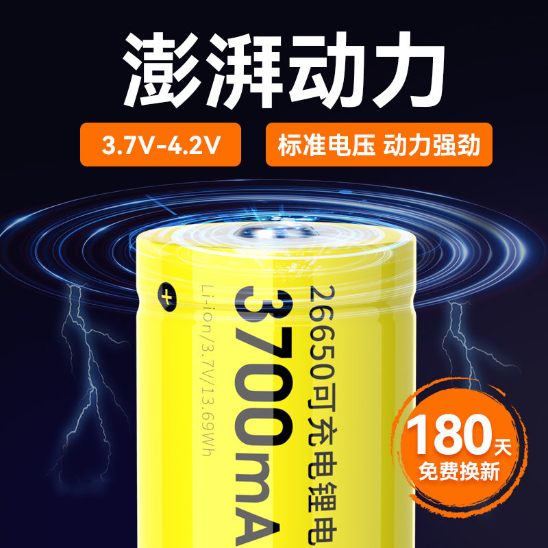 Single 26650 high-capacity battery 1 lithium battery (26650-3700mah) single slot charging 2 lithium batteries (26650-3700mah) single