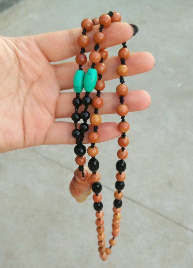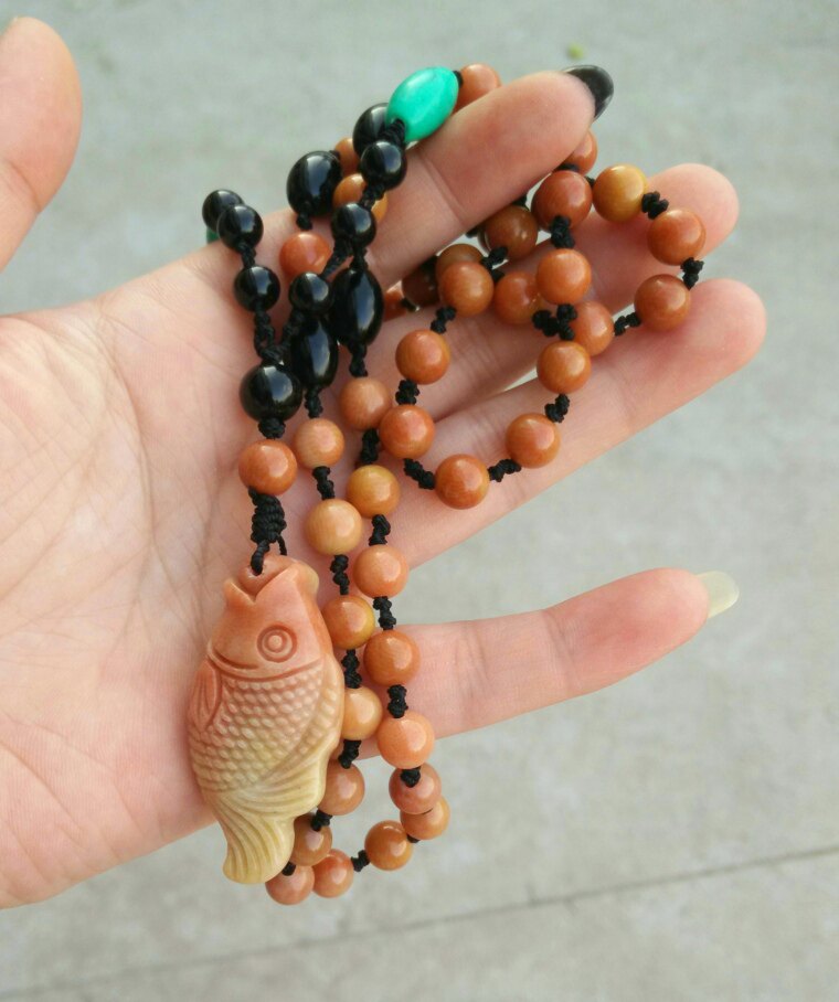 Ning Qiang Coral Jade Fossil Fine Print Hand Fingerprint Boutique Long Necklace Wool necklace with fish total of 60 L year after year
