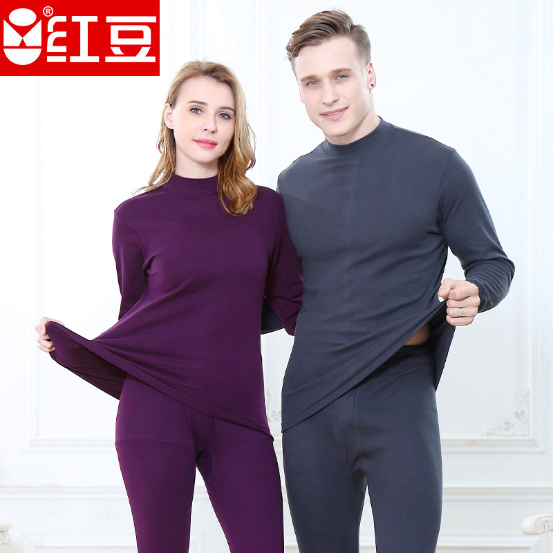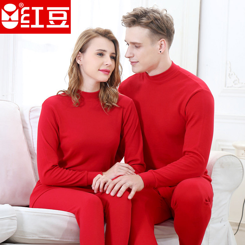 Red bean men and women middle-aged and elderly pure cotton mid-high half turtleneck autumn clothes sanitary pants cotton sweater underwear set red black white