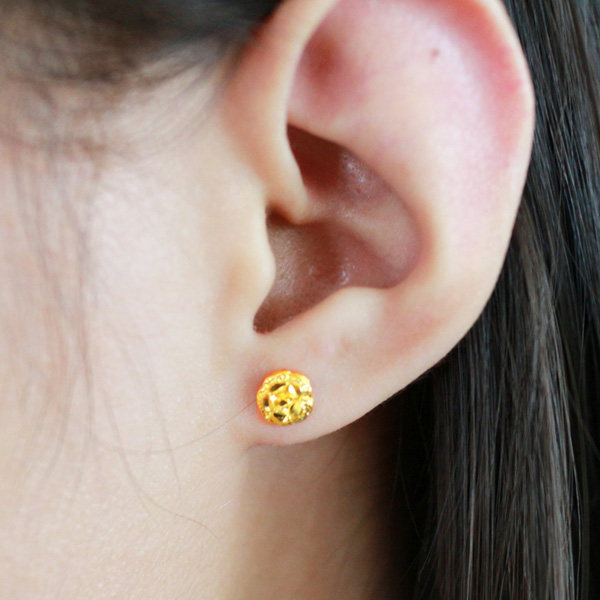 Gold Earrings Men's 999 Foot Gold Pure Gold Earrings Earrings Flowers Round Woman True Gold Wedding Jewellery