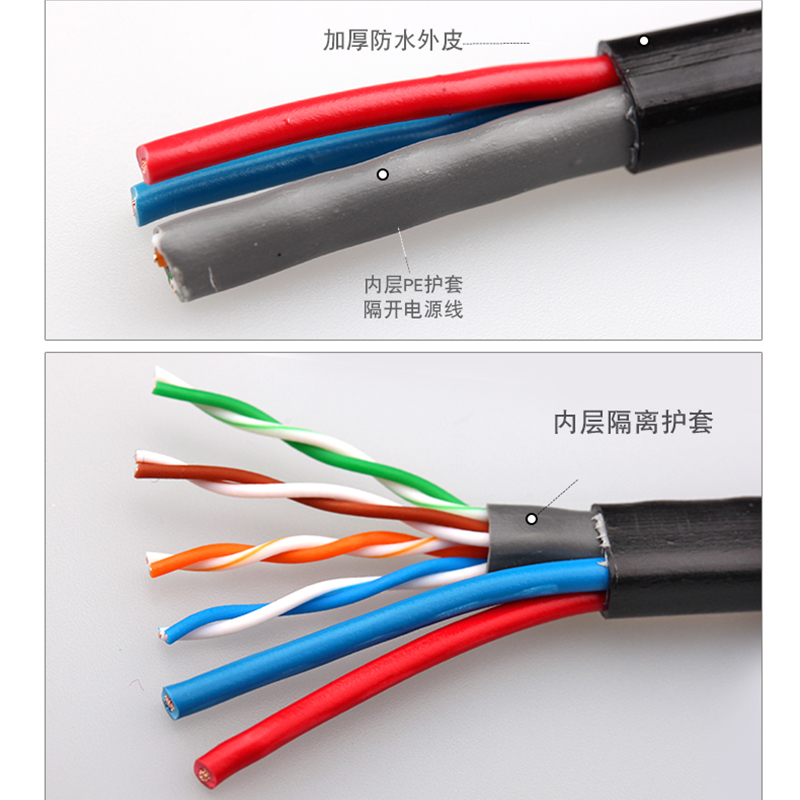 Network integrated line Monitoring network line pure copper 4-core 8-core monitoring line with power supply integrated line 4 2 composite line 300 meters