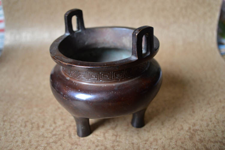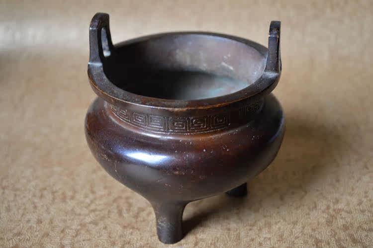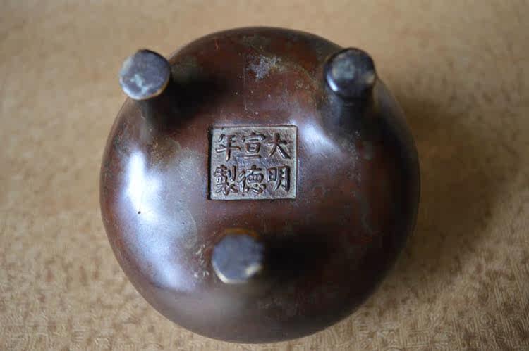 Pure Bronze Incense Stove High Imitation Square Ear Trifoot 3 foot Xuande stove bottom section Large Ming Xuanderi Incense Fragrant seal Seal Tuo