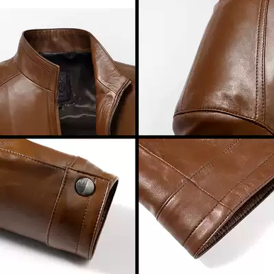 Bifeli first layer sheepskin men's leather leather slim-fit motorcycle leather Haining sheepskin jacket stand-up collar