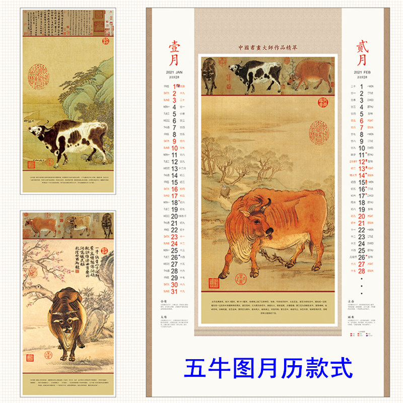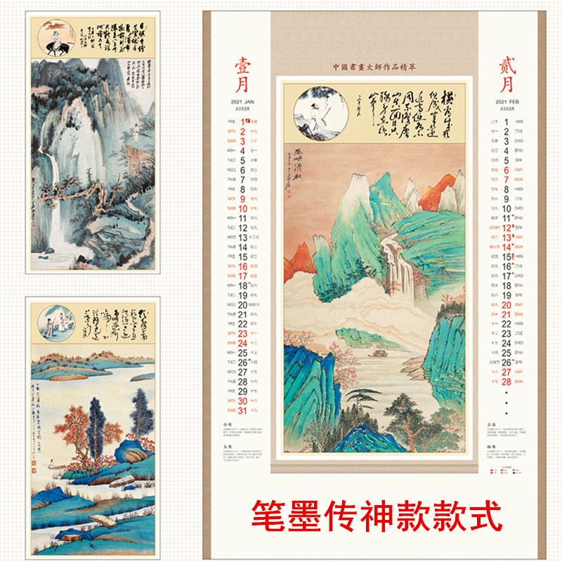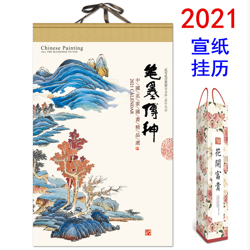 2021 Large wall calendar Company gift Chinese style Lunar calendar Famous Palace Museum collection calendar with gift box