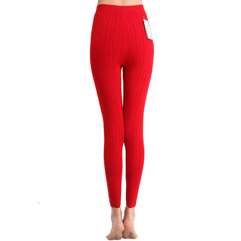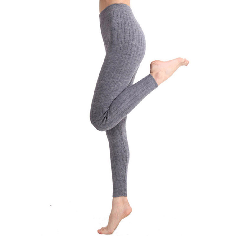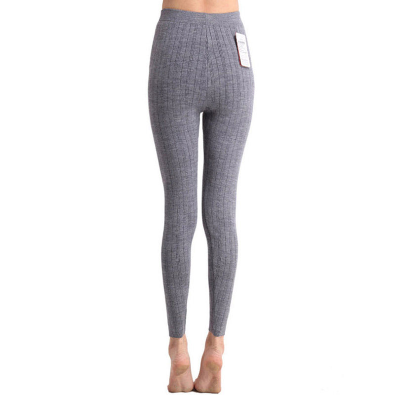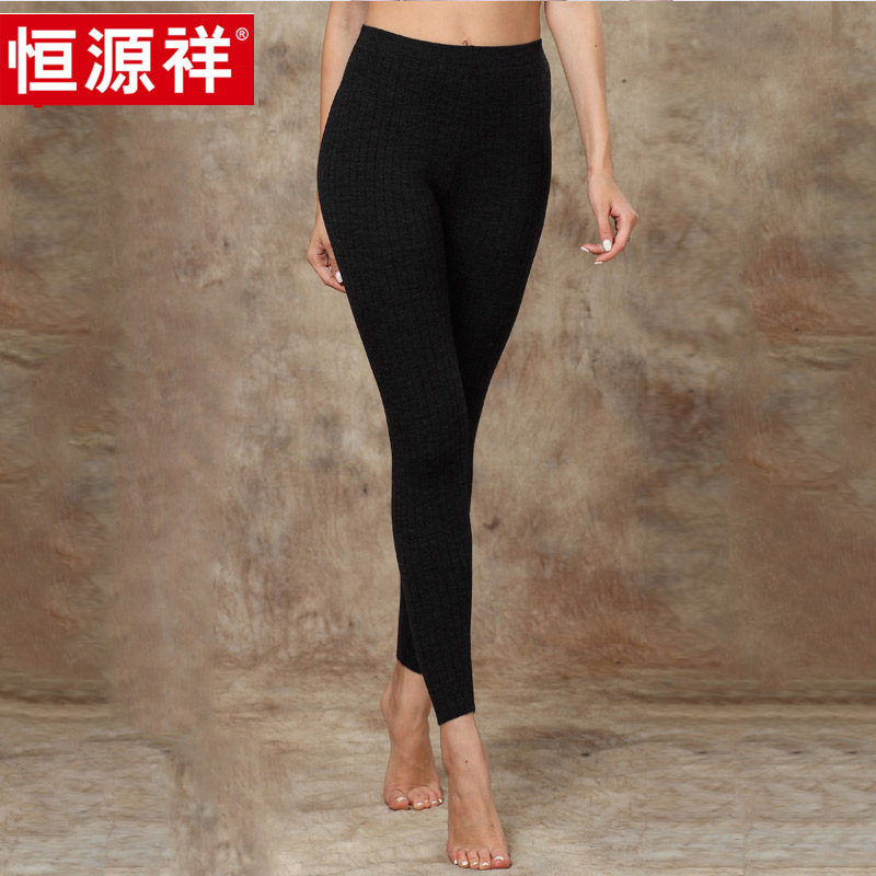 Hengyuanxiang women's wool pants autumn and winter double-layer thickened solid color striped thermal underwear slim-fitting bottoming cotton pants