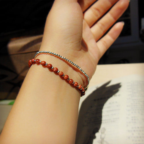 Sterling silver Korean edition bracelet double layer custom 99 feet silver Golden Stone lucky hand string Girls jewelry gift anklet