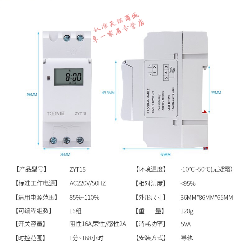 Shanghai Zhuoyi small time control switch ZYT15 timer 2P size limited special price