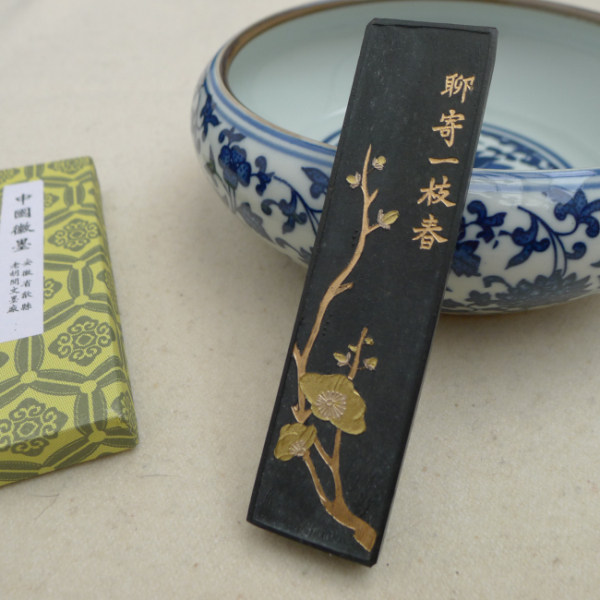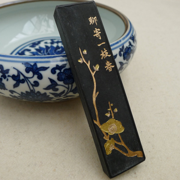 1 Two chatting to send a spring sun-smoked ink (emblem of the old Hu Kaiwen ink-ink-ink-block ink block with four treasures)