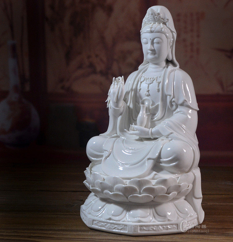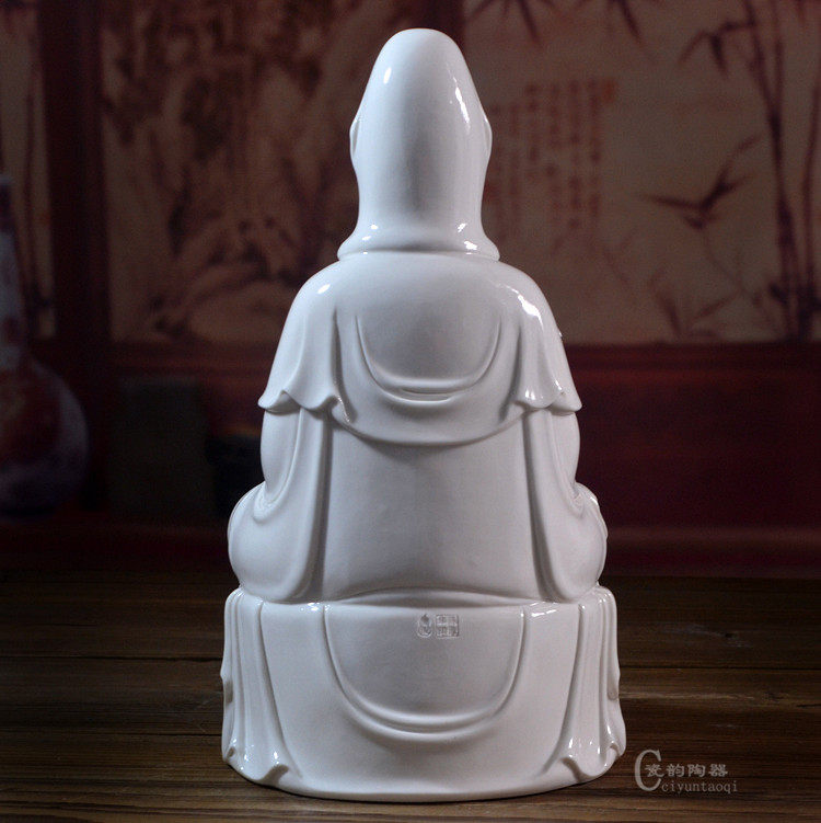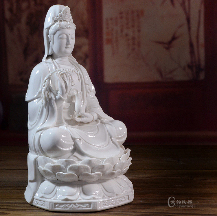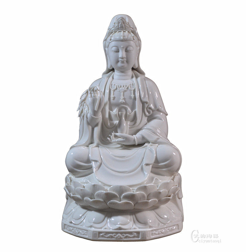 Dehua white porcelain Guanyin Buddha statue ornaments Sitting Lotus ceramics Bodhisattva Guanyin statue Home town house Feng Shui