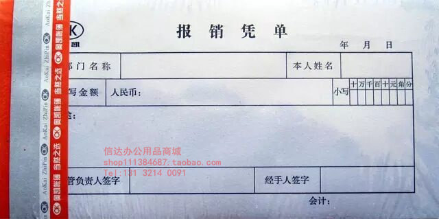 Okay reimbursement voucher 21*10 5cm reimbursement form reimbursement sticker reimbursement voucher Tianjin