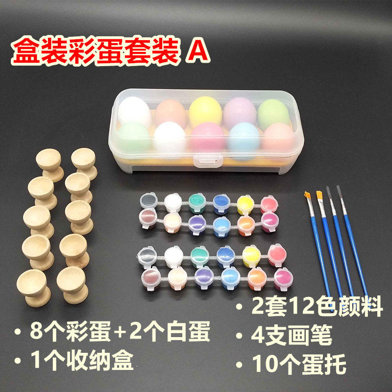 1 egg set, 1 white egg + 6 color paint + paint pen + egg holder 10 wooden egg A set, 8 easter eggs 2 white eggs + 12 color paint + paint brush + egg holder 10 wooden egg B set, 8 easter eggs 2 white eggs + 12 color paint + brush (no egg tray) 10 wooden egg C set, 10 white eggs + 12 color paint + brush + egg holder 10 wooden egg D set, 10 white eggs + 12 color paint + paint pen (no egg holder) 3 wooden egg A set, 3 white eggs + 12 color paint + brush + egg holder 3 wooden egg B set, red and yellow blue 3 eggs + 12 color paint + brush + egg tray 3 wooden egg C set, blue pink green 3 eggs + 12 color paint + paint pen + egg holder 3 wooden egg D set, red, yellow and purple 3 eggs + 12 color paint + brush + egg holder 3 wooden egg E set, simulation 3 eggs + 12 color paint + brush + egg tray 3 wooden egg F set, self-selected color (remarks) 3 eggs + 12 color pigment + paint brush + egg tray 10 single wooden eggs, excluding boxes and other materials, please note the color