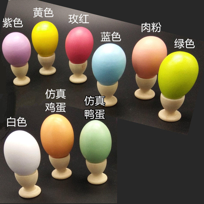3 wooden egg E set, simulated 3 eggs + 12 color paint + brush + egg holder