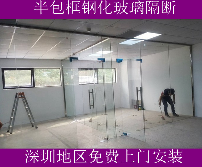 Office frameless 12mm tempered glass glass office partition Shenzhen bag door-to-door installation
