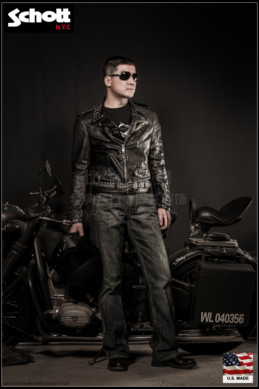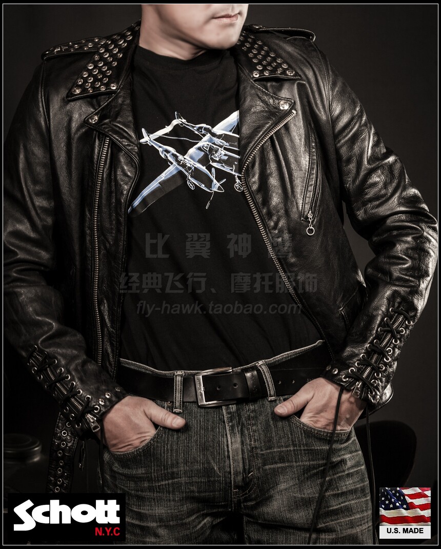 Schott NYC limited hand custom made metal rivet cable-stayed punk rock locomotive cow leather jacket STUD