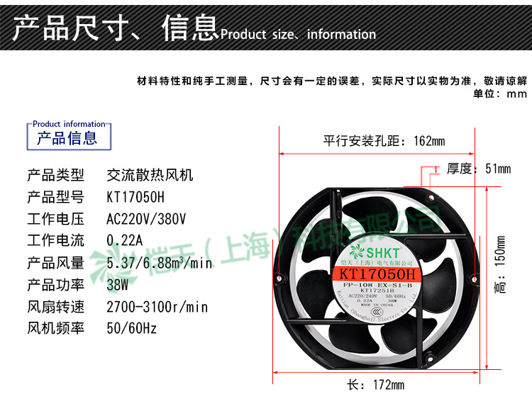 KT17050H cooling fan 220V electric welding machine cabinet distribution box 380 axial fan fp-108ex-s1-s B