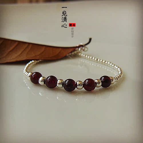 2022 trendy natural burgundy garnet hand 999 foot silver female design custom jewelry