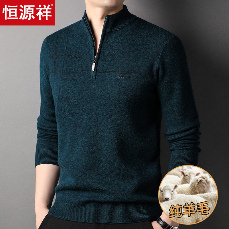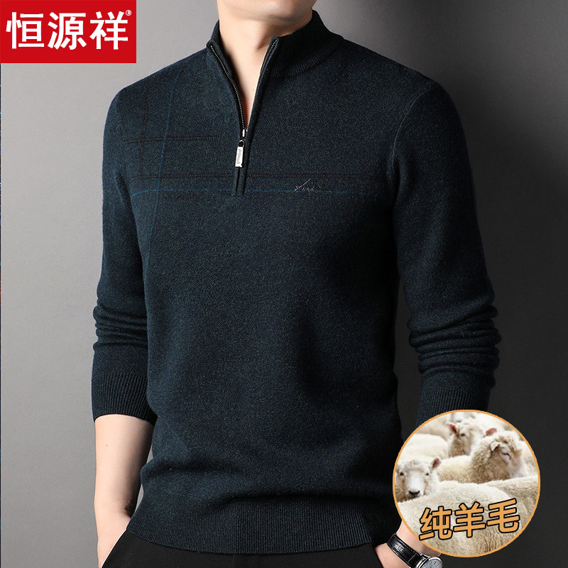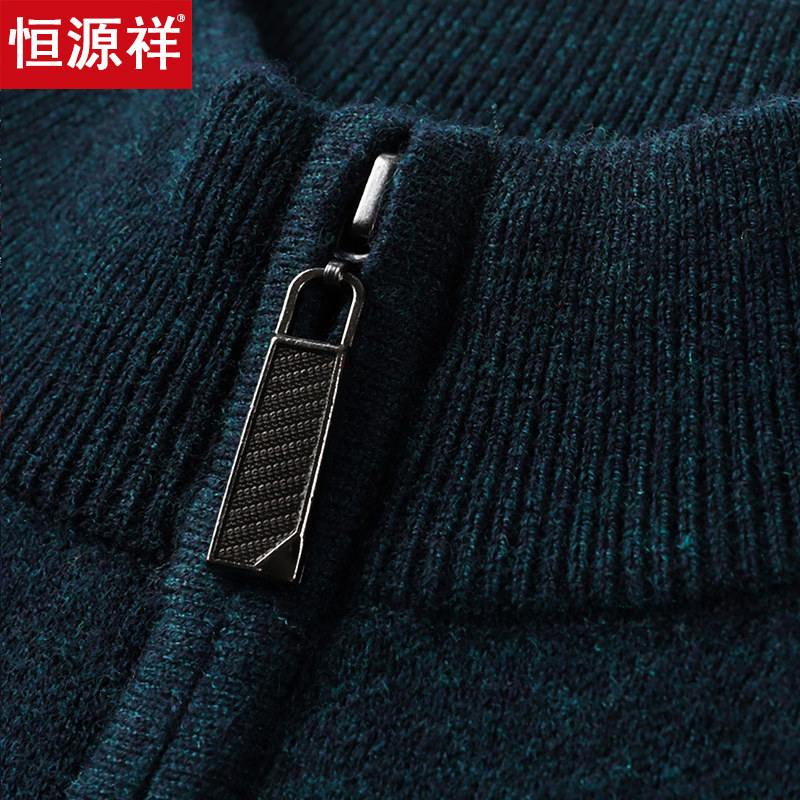 Hengyuan Xiangxiang Sweater Men Winter Pure Wool Mid-Semi-High Zipper Warm Sweater Thick Knitted Sweater