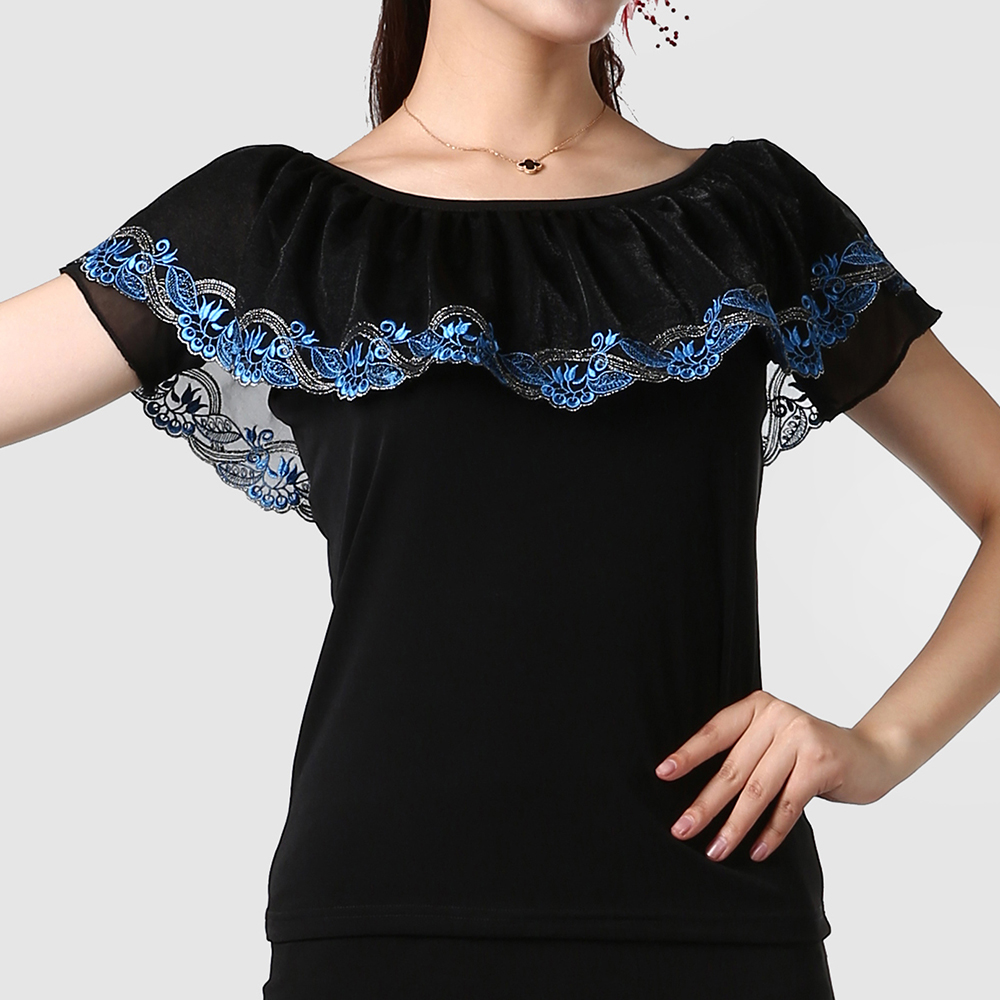 Morden Dance Square Dance Dress Short Sleeves Latin Dance Half-Body Blouse Short Sleeve Round Collar Over Season Promotion Women's Dresden