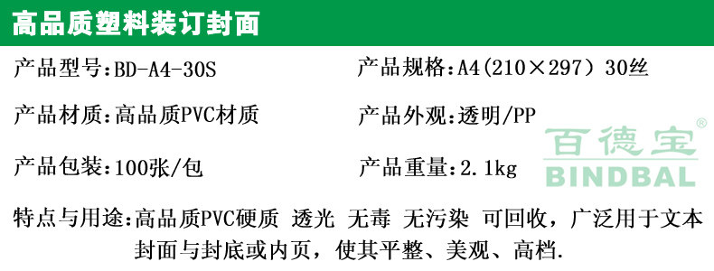 Baidebao binding film cover a4 transparent film PVC100 sheets plastic binding cover frosted PP 30 silk